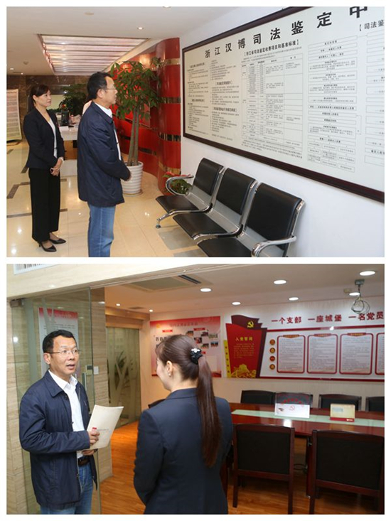 浙江省汉博鉴定科学技术研究院名誉院长、浙江汉博司法鉴定中心首席顾问胡祖平,党支部书记、副主任梁锋对侯德福主任表示热烈欢迎。在梁锋的陪同下,侯德福主任参观了汉博党员活动室、各个鉴定科室、鉴定实验室,了解了人员、仪器配置情况,随后在会议室观看了汉博宣传片。